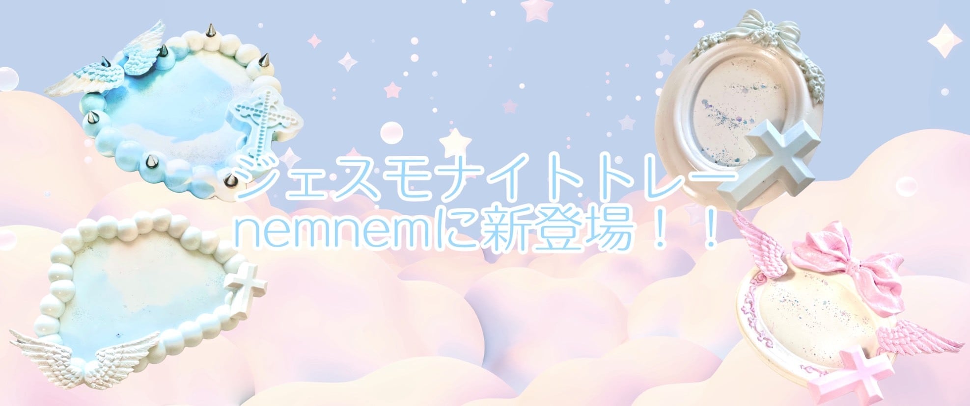 『特別価格!1点物』ʚAngelite tray ɞ ハンドメイド ハンドメイド雑貨 トレー ジェスモナイト 水色 ホワイト 白 雲 羽 十字架 kawaii ゆめかわいい 神秘 個性 サブカル
