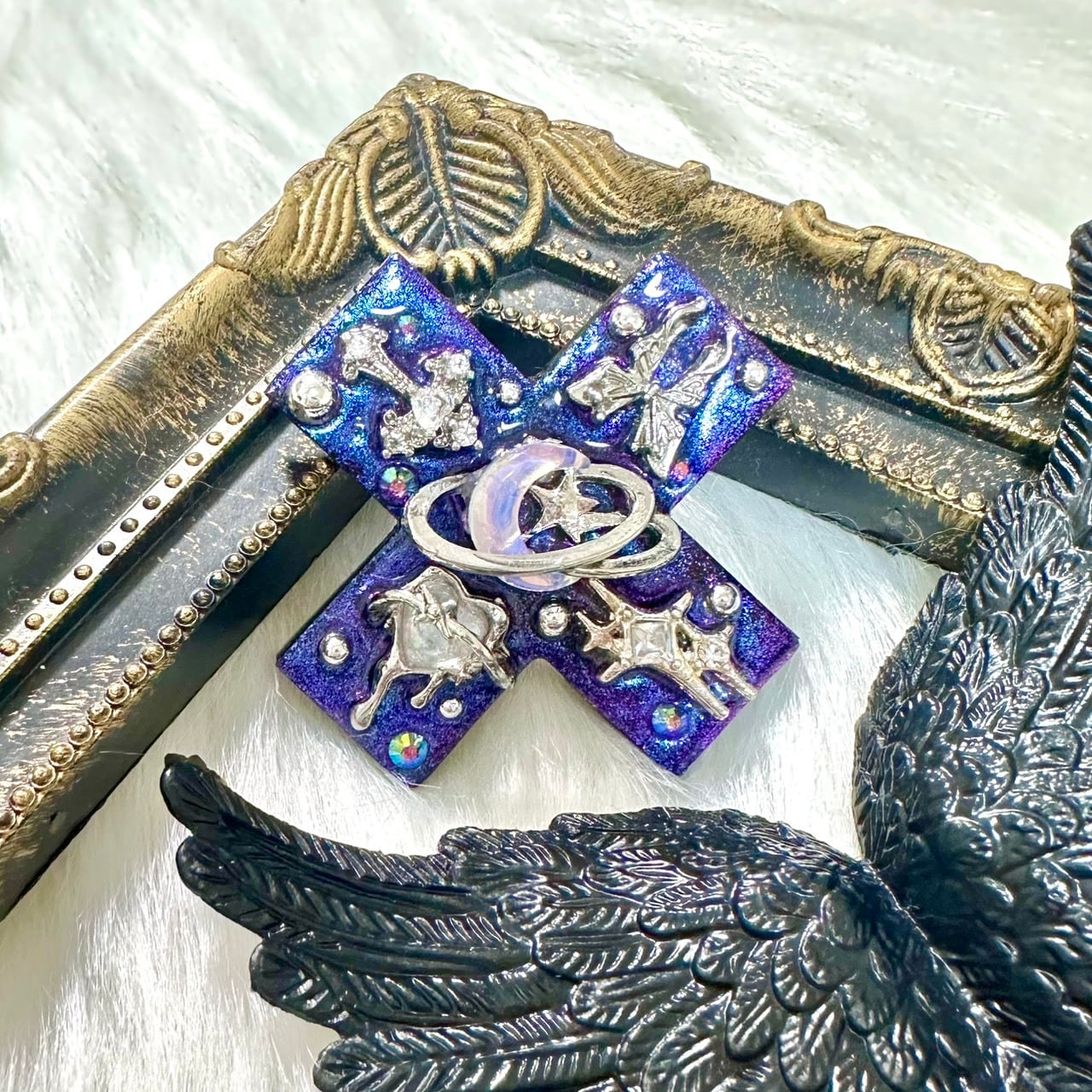 【1点物】ʚきらめきばってんピンɞ ハンドメイドアクセサリー ハンドメイド ヘアピン ヘアゴム レジン ゆめかわいい 病みかわいい 天使界隈 韓国 個性派 原宿系 ロリィタ 量産 地雷 サブカル y2k 紫 宇宙 キラキラ 月 十字架 蝶々 ハート