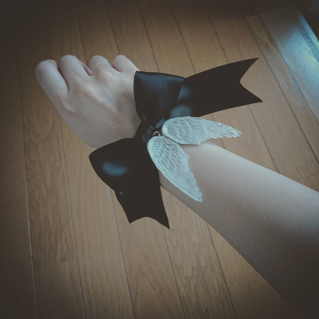 ✝天使の羽リボン✝ 病みかわいい 羽 りぼん ゴシック ゴスロリ レジン ヘアピン ヘアゴム メンヘラ 量産型 地雷