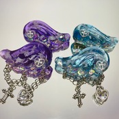 アシメのデザインで、右羽のみチェーンがついています✝キラキラなハートと小さな十字架がゆらゆらしていて見ていて飽きないです!
