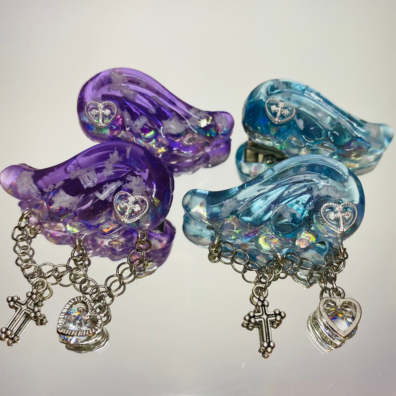 2色♡ʚふわわくらうどサイドピンɞ ヘアピン 雲 十字架 ハート 羽 ゆめかわいい 綺麗 空 レジン ロリィタ チェーン 量産 地雷 可愛い nemnem 個性 原宿系
